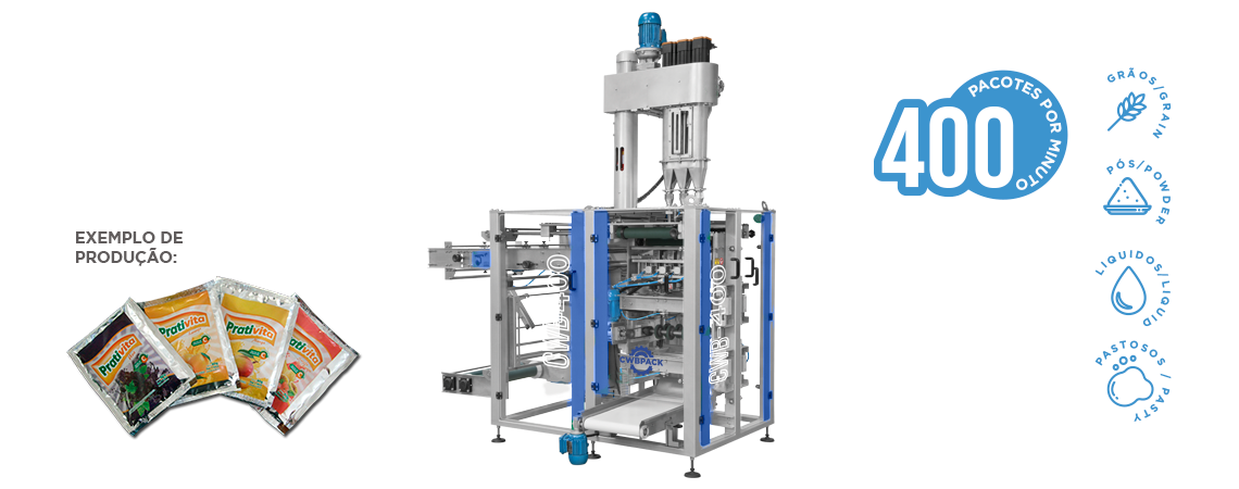 Empacotadora de Alto Rendimento e Elevada Eficiência, robusta e muito versátil, por estar disponível com diferentes sistemas de dosagens, como: