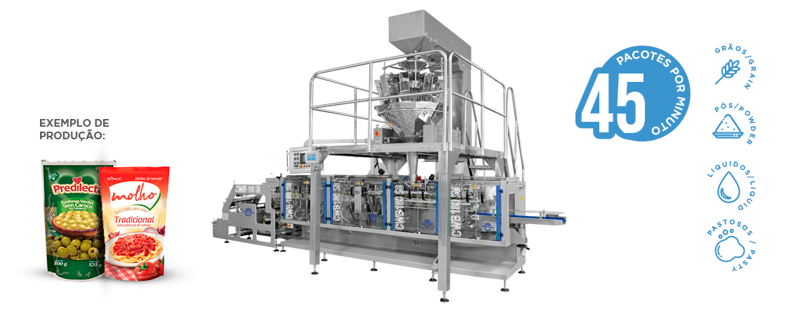 A máquina Stand Up Pouch TNX 180 SB, foi elaborada para atender o setor de molho de tomate, azeitonas em conservas, cogumelo, produtos secos e pastosos.