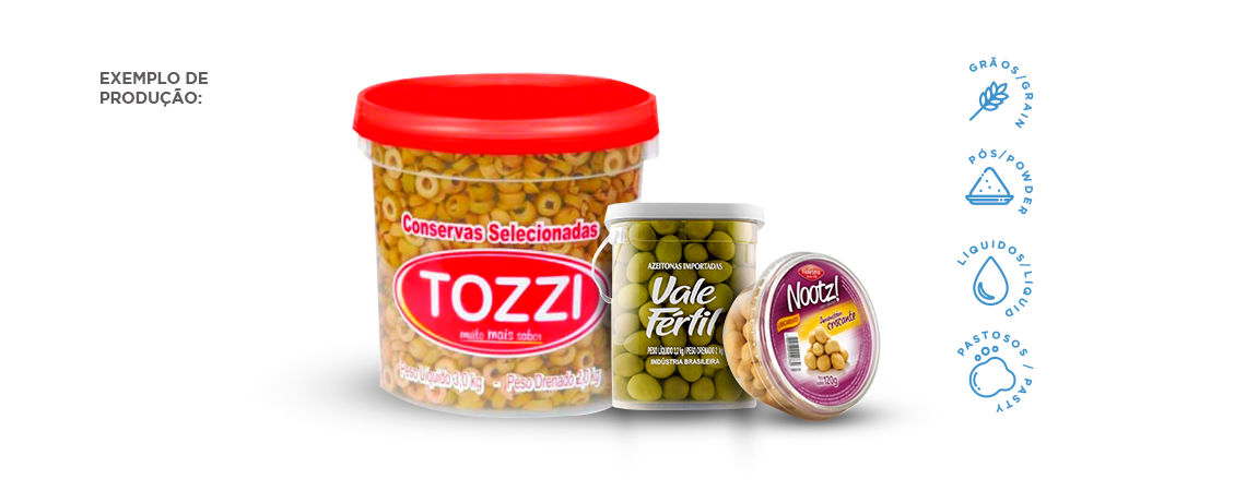 - Carrossel para potes de plástico de diversos formatos e tamanhos com opcionais de trabalho com selo de alumínio ou selo plástico com bobina. Nesse equipamento podemos trabalhar com os mais variados tipos de dosadores, para as mais variados tipos de produtos e necessidades.